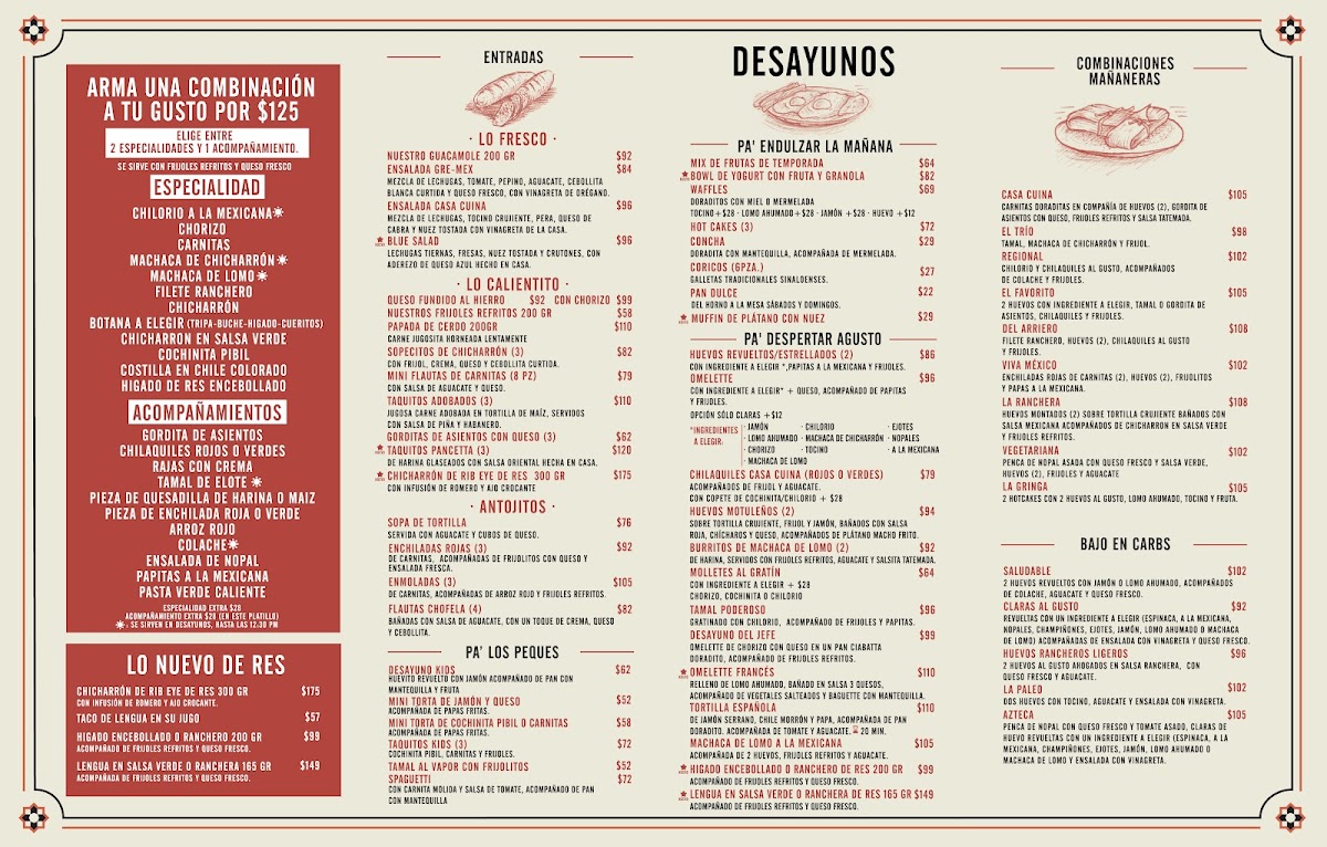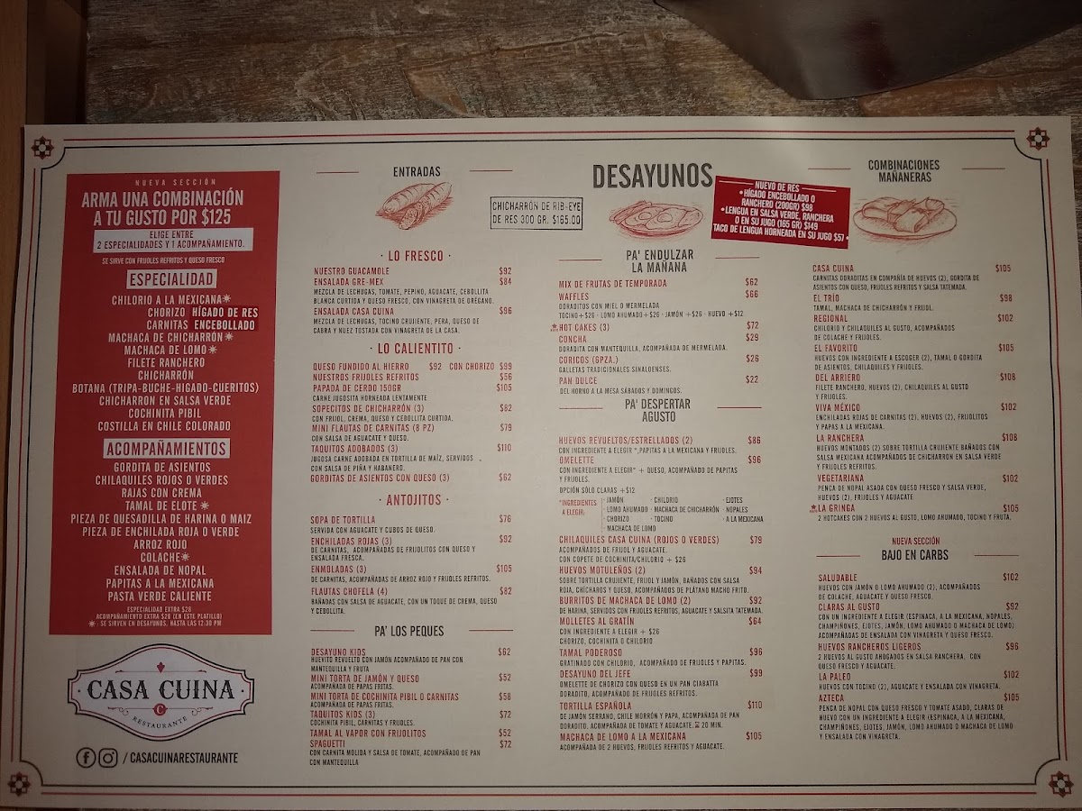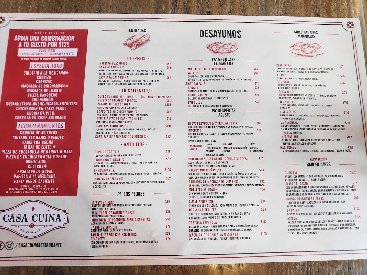 Casa Cuina in Culiacán Rosales offers a fresh take on traditional Mexican breakfast and lunch fare, blending authentic flavors with a modern touch. Their signature “Arma Tu Platillo” lets you customize your meal by choosing either two specialties and one side or vice versa, all served with creamy refried beans and fresh cheese. Highlights include hearty options like the rich 200-gram beef liver, served ranchero or encebollado style, and tender beef tongue bathed in vibrant green or ranchera salsa. For lighter moments, the homemade banana walnut muffin and buttery concha doradita with jam provide a perfect balance.